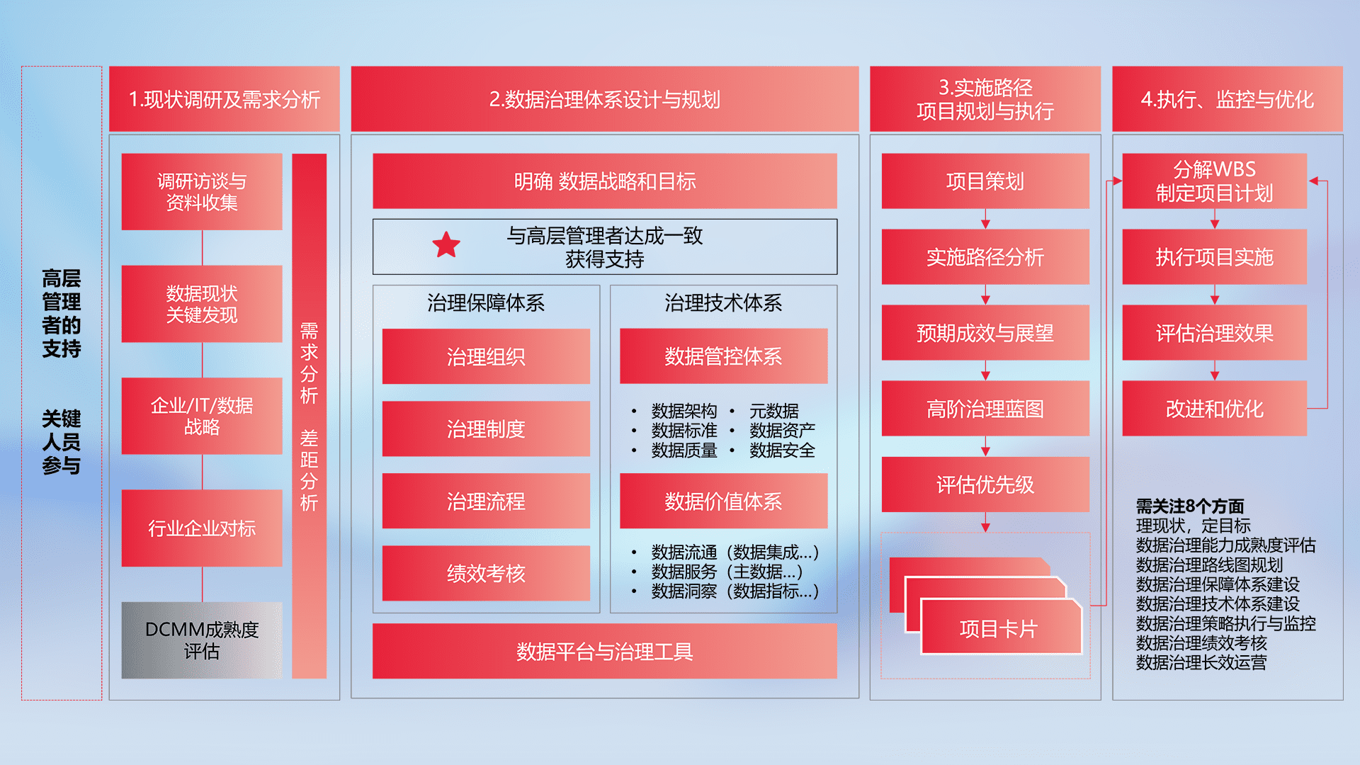 制定并执行统一的数据标准,,规范数据定义和格式,,,,消除冗余和不一致性,,,,实现跨部门和跨系统的数据一致性,,,,为企业提供标准化的数据基础。。。